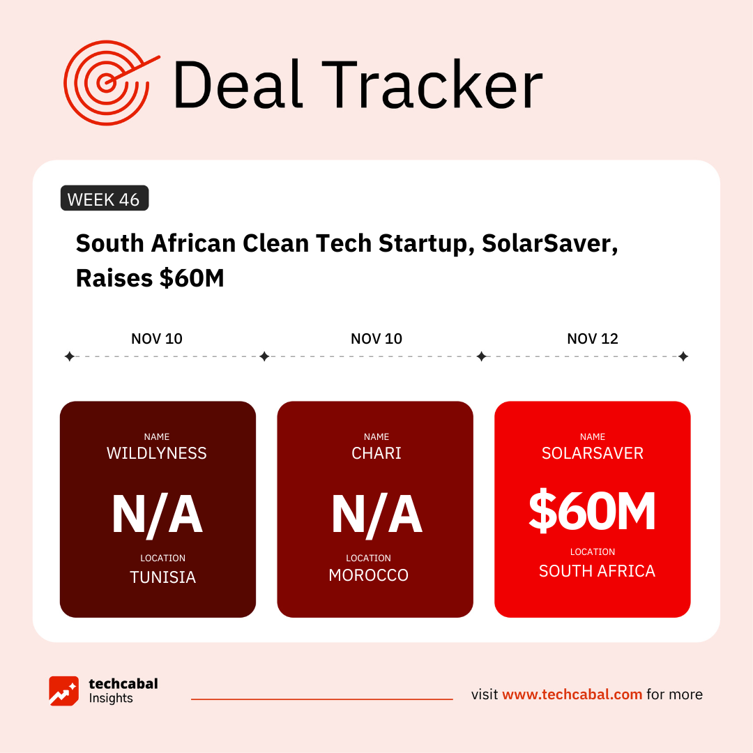 This week, SolarSaver, a South African cleantech startup, secured $60 million to expand access to solar power for small and medium-sized businesses in South Africa. The round was led by Inspired Evolution’s Evolution III Fund, FMO, the Dutch development bank, and participation from Swedfund. (Nov 12)