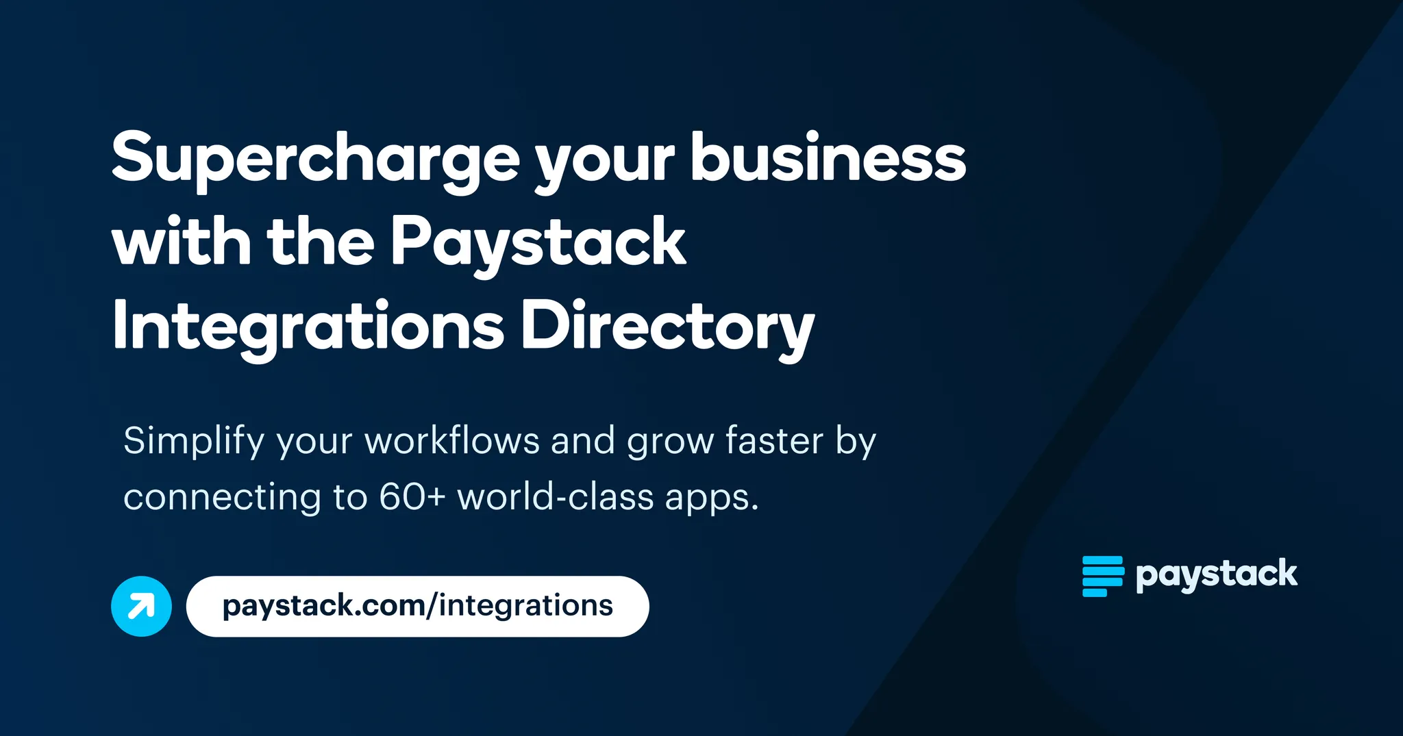 With the Paystack Integrations Directory, connect to 60+ powerful apps to streamline your business. Learn more here →
