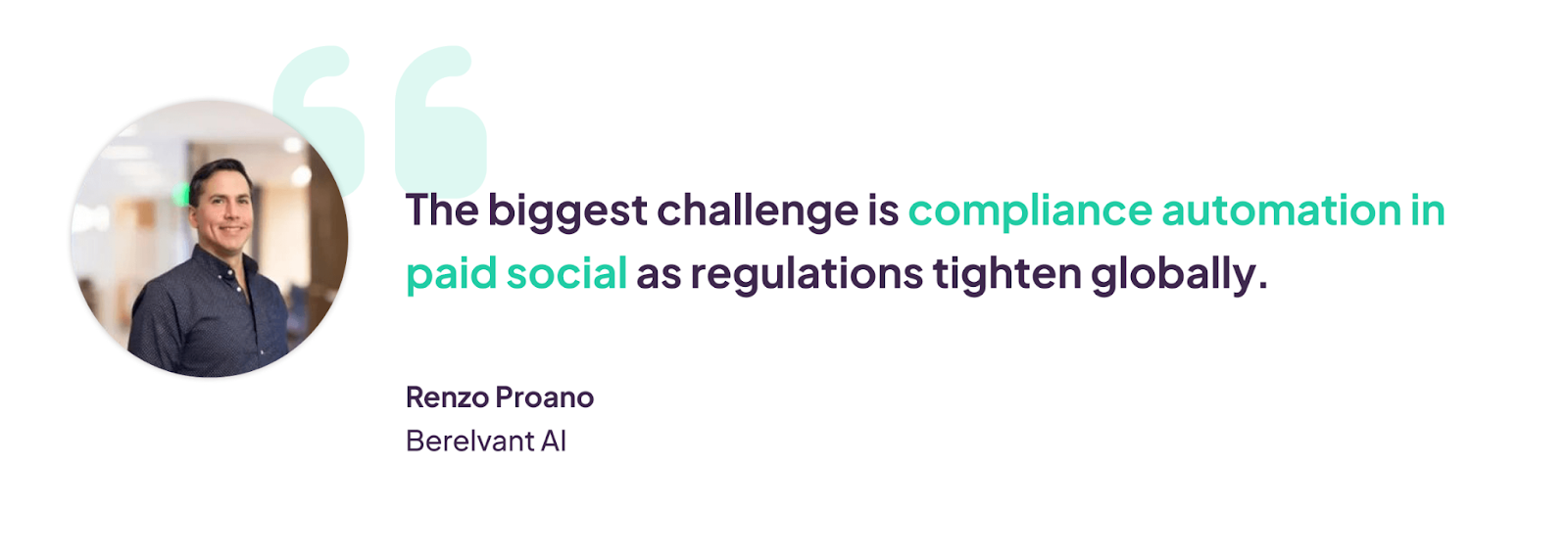 “The biggest challenge is compliance automation in paid social as regulations tighten globally. One non-compliant ad variation can trigger a $50K fine. Manual creative review does not scale when you’re testing 200 variants weekly across 6 countries with different disclosure rules. We have had to build custom compliance layers using AI that flag regulatory risks before ads even reach the platform — most agencies are not equipped for this level of operational rigor.”
