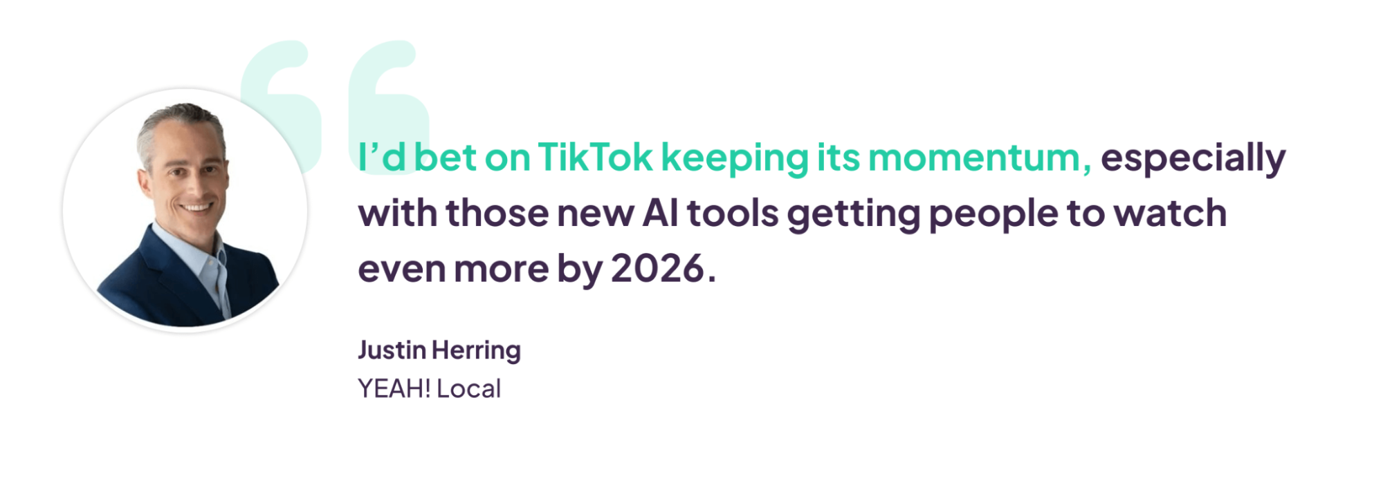 “I’d bet on TikTok keeping its momentum, especially with those new AI tools getting people to watch even more by 2026. Facebook, on the other hand, will probably keep getting harder for brands to reach people. At our company, we use AI to help make TikTok videos and pair that with basic SEO, which actually brings in customers. Learn video editing, how to write good AI prompts, and the new rules. You have to move fast in this space.” – Justin Herring, Founder and CEO of YEAH! Local.