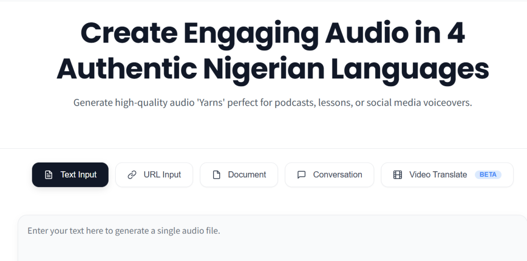 Use cases: Content creators and entrepreneurs can use YarnGPT for social media video voiceovers in Yoruba, Hausa, and Igbo to reach a wider audience.
