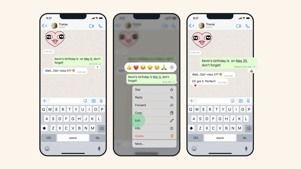 Whenever you edit a message, WhatsApp adds the word “edited” next to the time. Everyone in the chat can see it.
