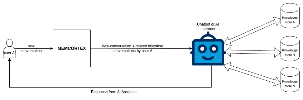 Memcortex is designed as a semantic memory layer that sits between an application and its underlying LLM. Instead of sending full conversation histories to a model, Memcortex stores past interactions between a patient and the organisation’s AI chatbot in a vector database.