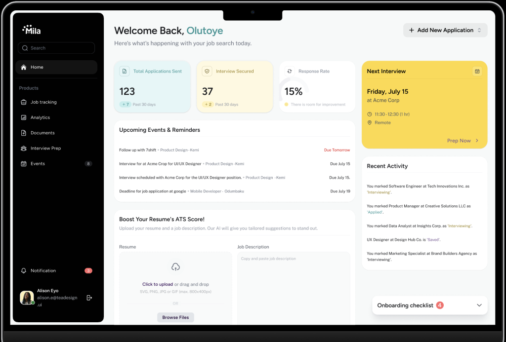 The tool can also analyse and optimise resumes for specific roles and ensure they can pass through automated tracking systems (ATS). Additional tools offered by Mila include interview preps, mock interviews, and reminders for follow-ups.