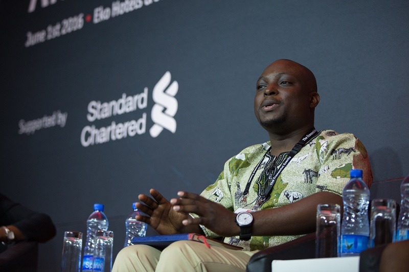 Abiola Olaniran speaking on a panel at a Standard Chartered–supported tech event held at Eko Hotels and Suites, Lagos, in June 2016. Image Source: Disrupt Africa