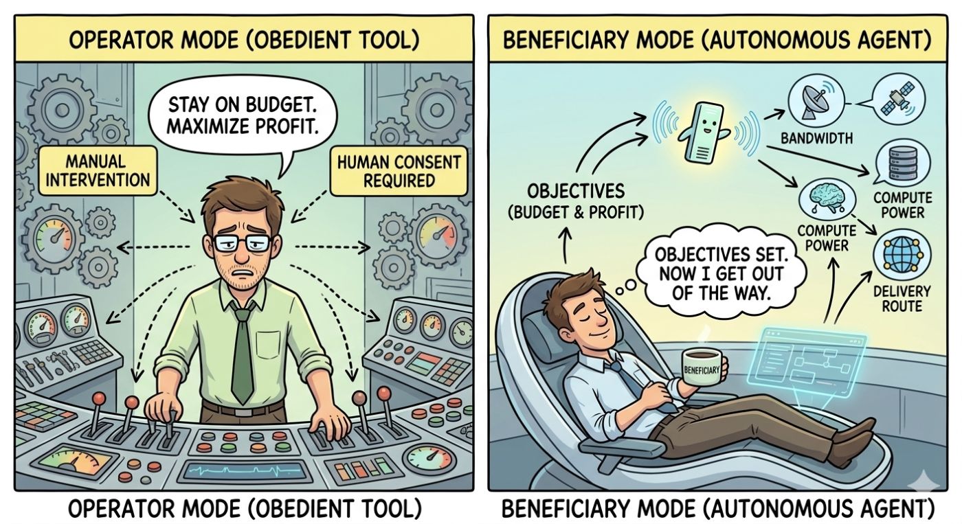 An AI agent needs cloud computing power. It doesn’t ask for a credit card. It scans the market, identifies another agent with excess capacity, verifies via a smart contract, and executes. No emails. No procurement meetings. No “I’ll get back to you.” The daily economic activity of the internet will increasingly occur between machines. Humans move from operators to beneficiaries, setting objectives, then getting out of the way.