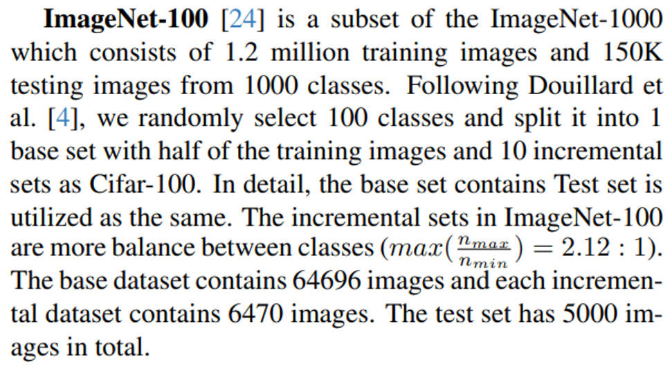 Corresponding to the definition of our new increment-alinstance learning (IIL) task, we reorganize the public dataset Cifar-100 [11] and ImageNet-100 [24] to establish the benchmark in this research topic.