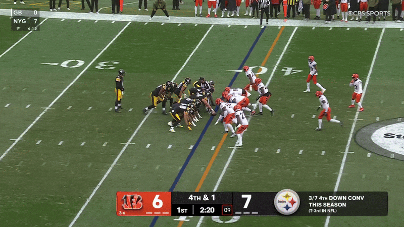 Offense is short? Who cares! Put the ball wherever you like! Yup, Pittsburgh got that first down.