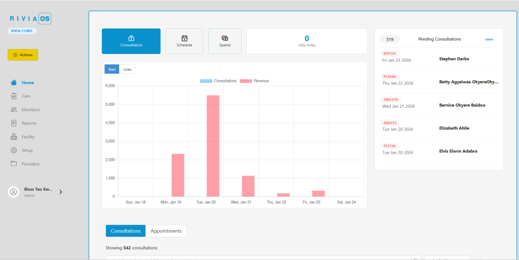 While WhatsApp simplifies access for patients, the technical backbone of Rivia is a proprietary platform called RiviaOS. The system grew out of the acquisition of Waffle, a Ghanaian SaaS company focused on hospital and inventory management, shortly after Rivia’s launch in April 2024. Waffle’s tools were rebranded as RiviaOS and now unify patient records, clinic workflows, scheduling, billing, and operational management across the network.