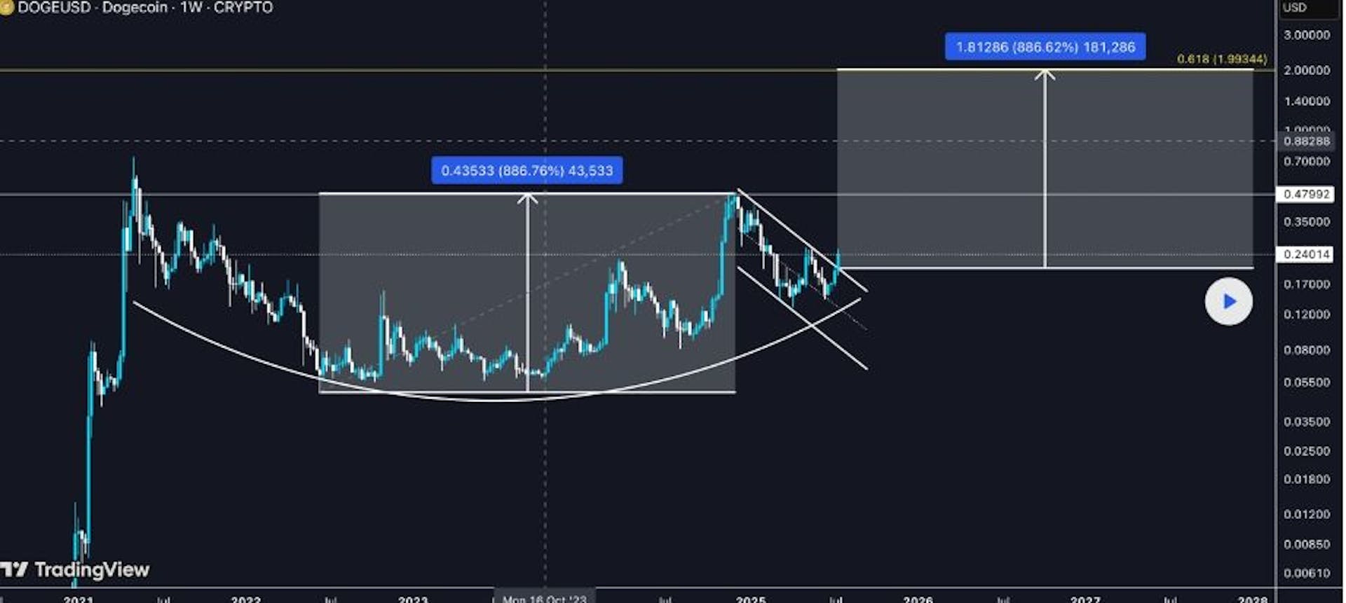 __Dogecoin__has broken out of its long downtrend, pushed past the $0.20 to $0.21 resistance range, and drawn a classic double‑bottom on the chart.