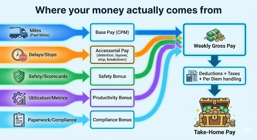 Reading: CPM Isn’t the Whole Story: How Safety & Productivity Bonuses Change Your Real Trucker Pay