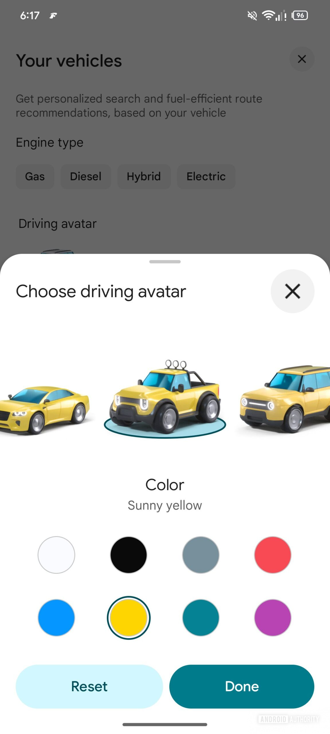 In Google Maps version 25.42.02.817770306, we managed to enable a small but handy change that could let you select your cartoon representation without having a particular journey in mind. With the change enabled, the ‘Your vehicles’ section in Google Maps settings, which currently focuses on fuel types, now includes a new ‘Driving avatar’ option. Selecting that took us to the menu of avatars.