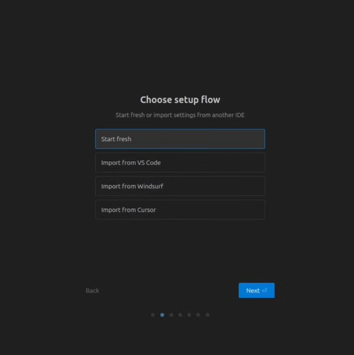 When you open the app for the first time, it gives you a tour. You can import your settings from other tools (like VS Code or Cursor), choose a color theme, and sign in with your Google account.