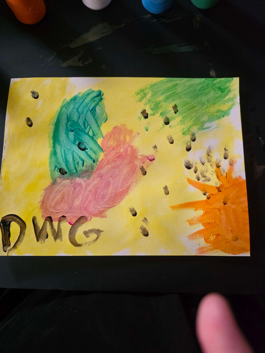 I made the header image today whilst thinking about this article and my formula. I wanted to have the canvas be yellow to represent happiness. The other colors, black, blue, (and some others I am unsure about) were selected to form a piece that conveys the messiness of happiness. Sometimes there are black spots, sometimes we are blue, but what matters most is that we are yellow (not cowardly lol) more than the splotches that can appear in our life. Below is the original image without the crop: