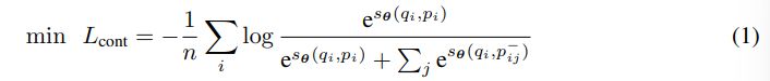 Contrastive pre-training aims to distinguish the relevant text pairs from other irrelevant or negative pairs. Given a collection of text pairs {(qi, pi)}n , we assign a list of negative passages {p−}m i=1 for the i-th example. Then the InfoNCE contrastive loss [10] is as follows: