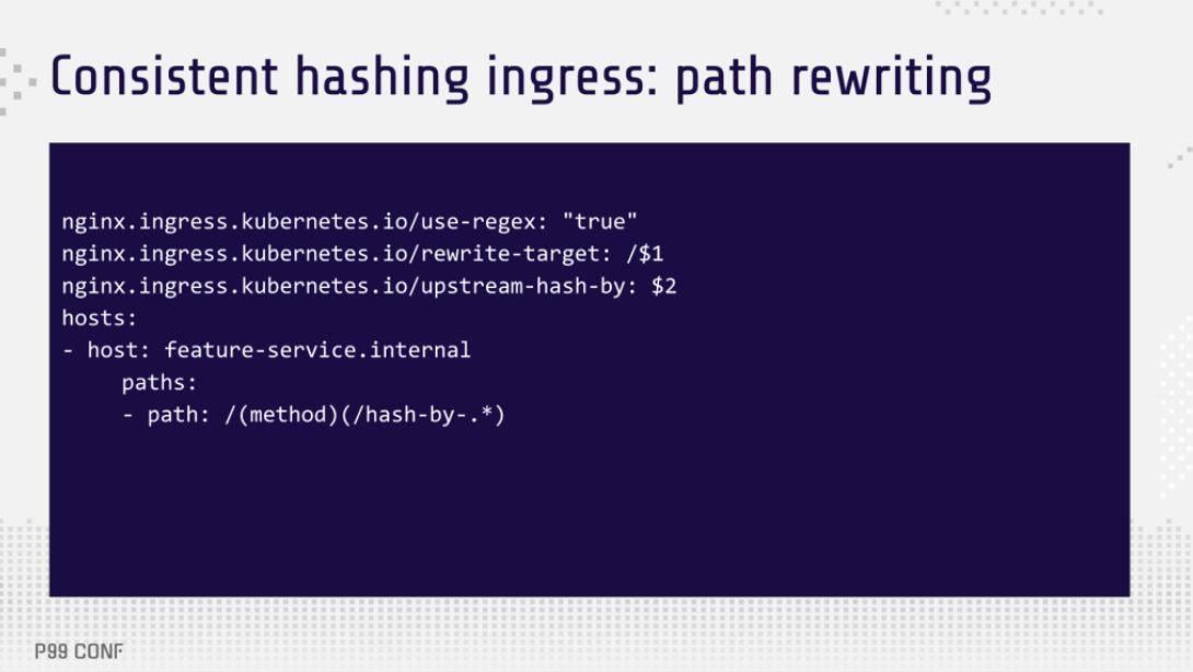 • It was tricky to provide a hash value for a request because Ingress doesn’t support the most obvious solution: a gRPC header.