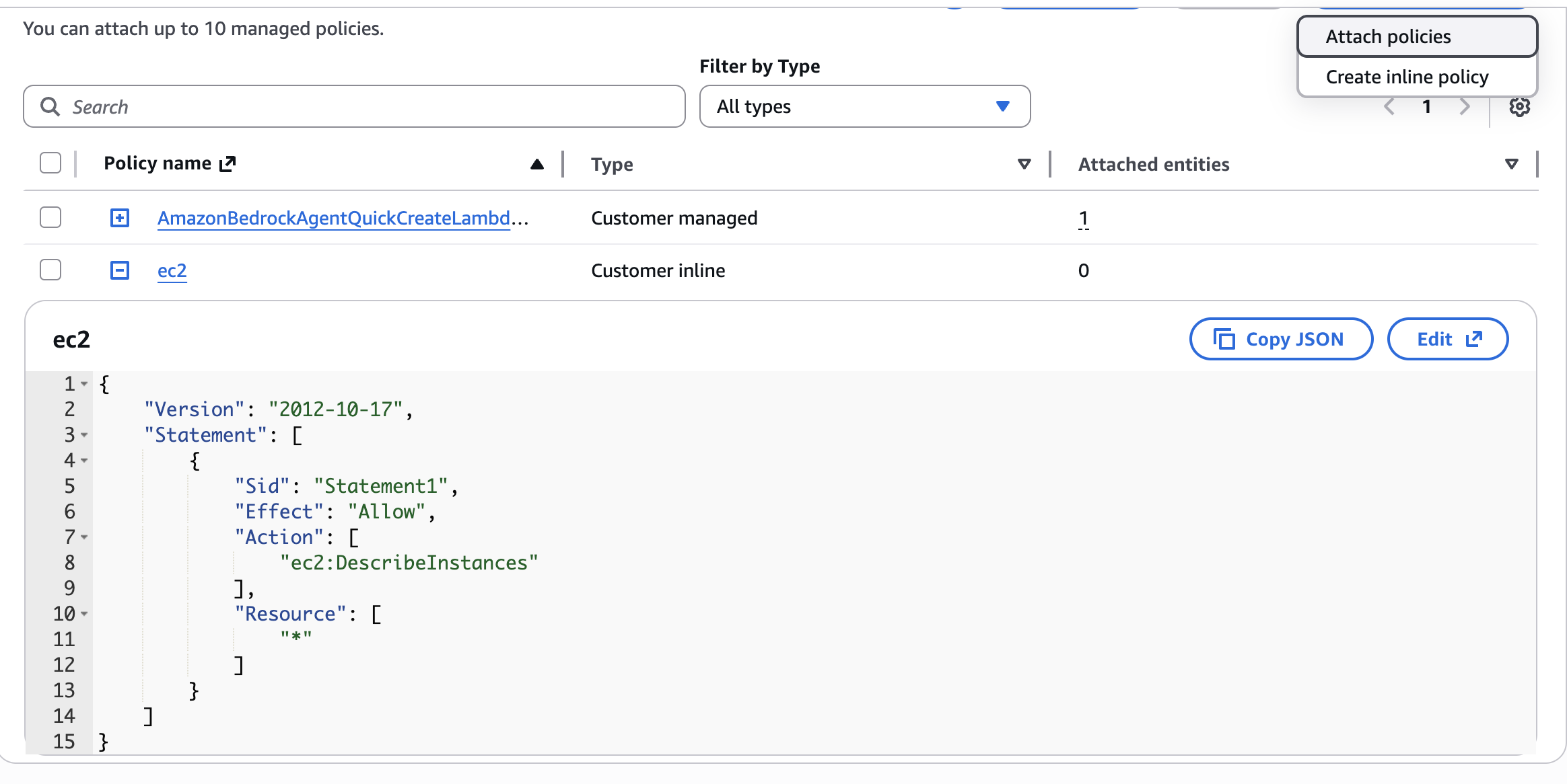 Go to your lambda function, Bedrock created the function with EC2 prefix in the name and add this code: