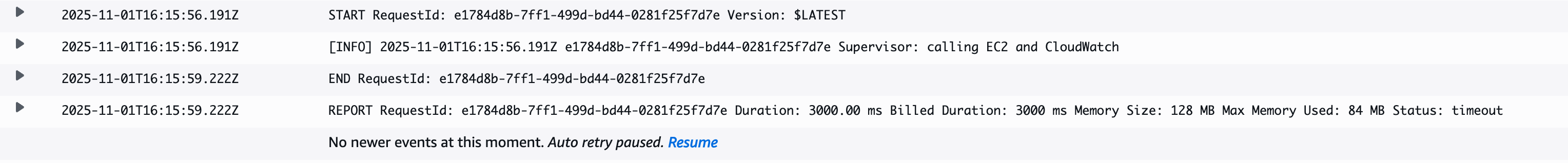 logger.info("Supervisor: calling EC2 and CloudWatch")