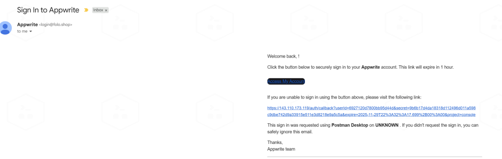 --data '{ "userId": "unique()", "email": "[email protected]", "url": "https://your-domain.com/auth" }'