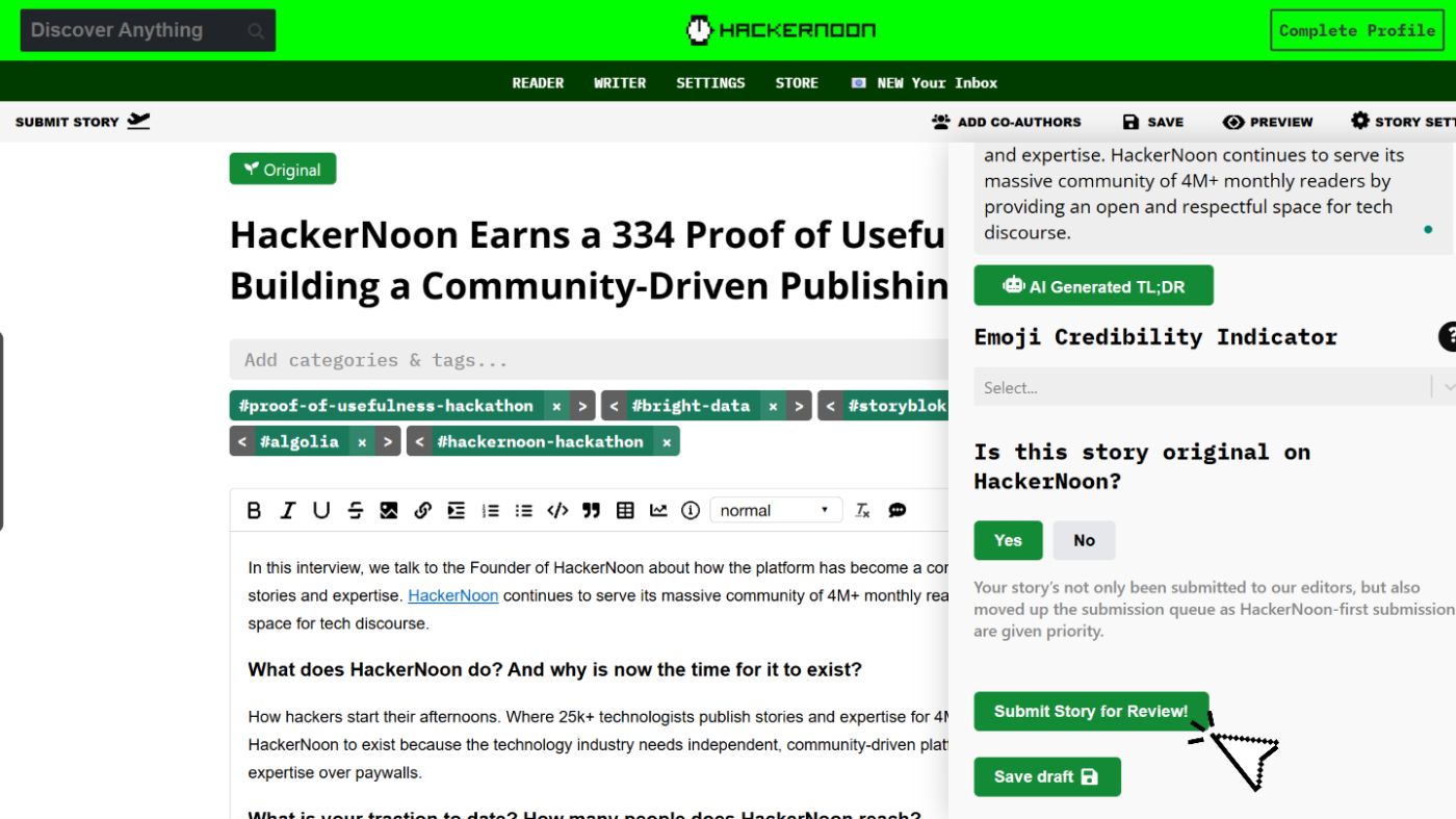 1. Tell Your Product Story: Move Your PoU Report Into a HackerNoon Blogpost Draft.