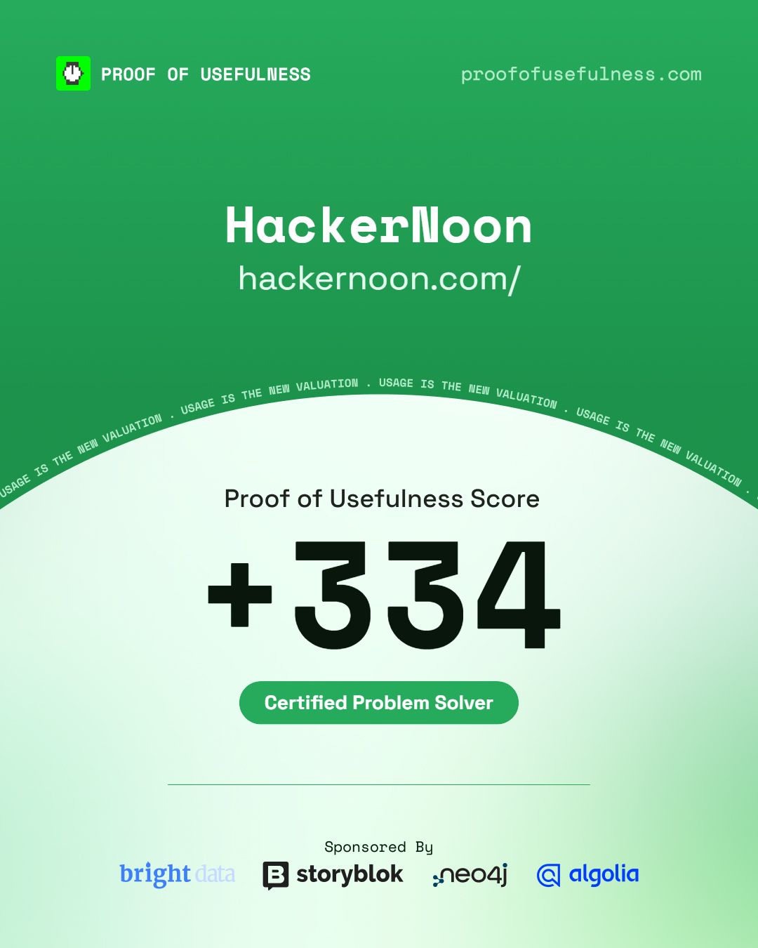 Excited about your score? Download and share your PoU Report Card everywhere 💚 (remember to tag HackerNoon, and our sponsors BrightData, Storyblok, Neo4j, and Algolia)!