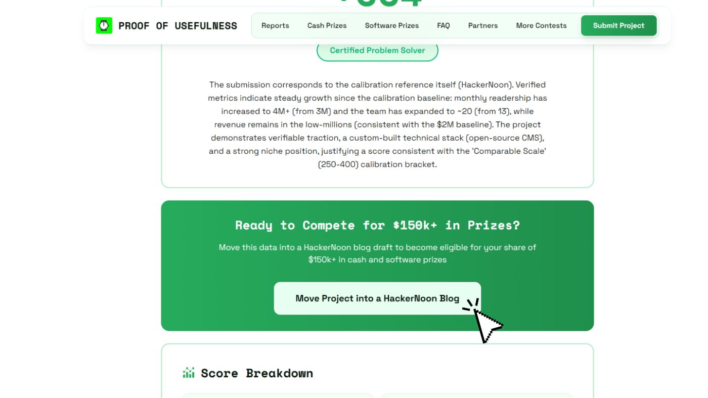 So you’ve got your Proof of Usefulness score – perfect! But in order to finalize your participation in the Proof of Usefulness Hackathon and compete for the $150K+ prize pool, you’ll need official documentation of your project. Luckily, HackerNoon’s got you 🫵