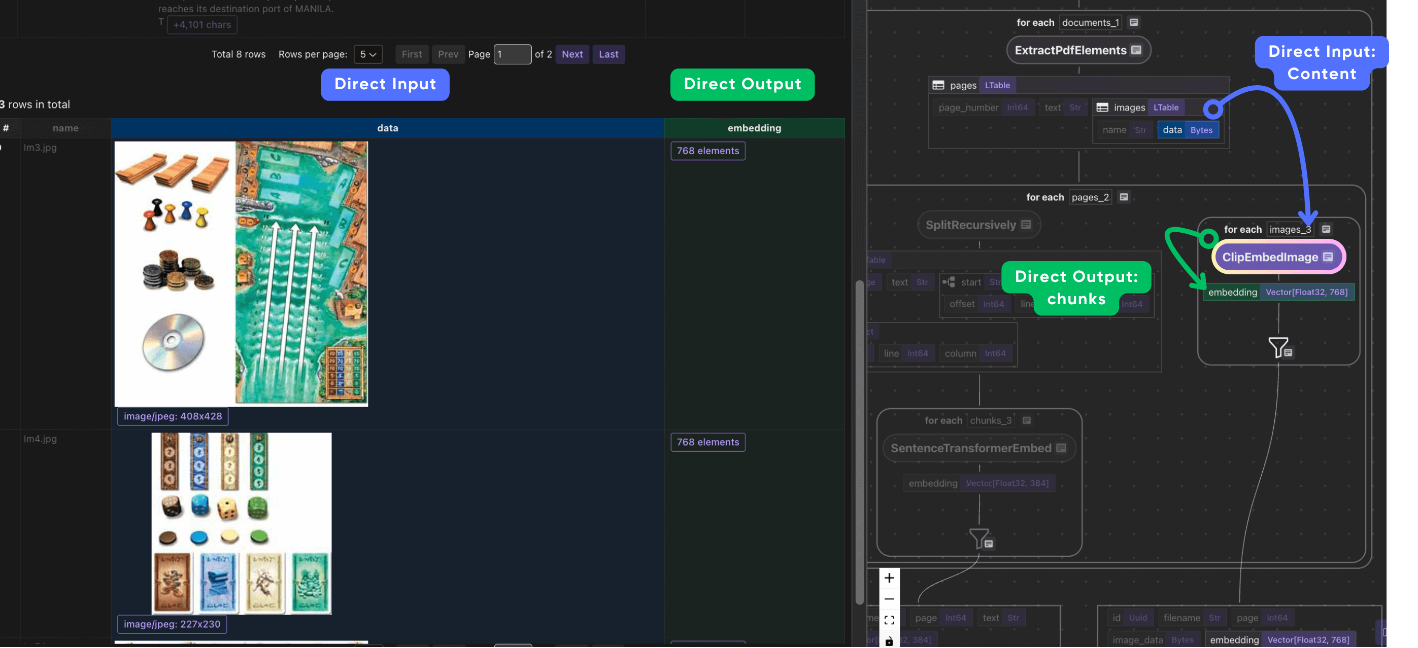 When we collect image outputs, we also want to preserve relevant metadata alongside the embedding. For each image, we not only collect the image embedding and binary data, but also metadata such as the original file name and page number. This association makes it possible to trace embedded images back to their source document and page during retrieval or exploration.
