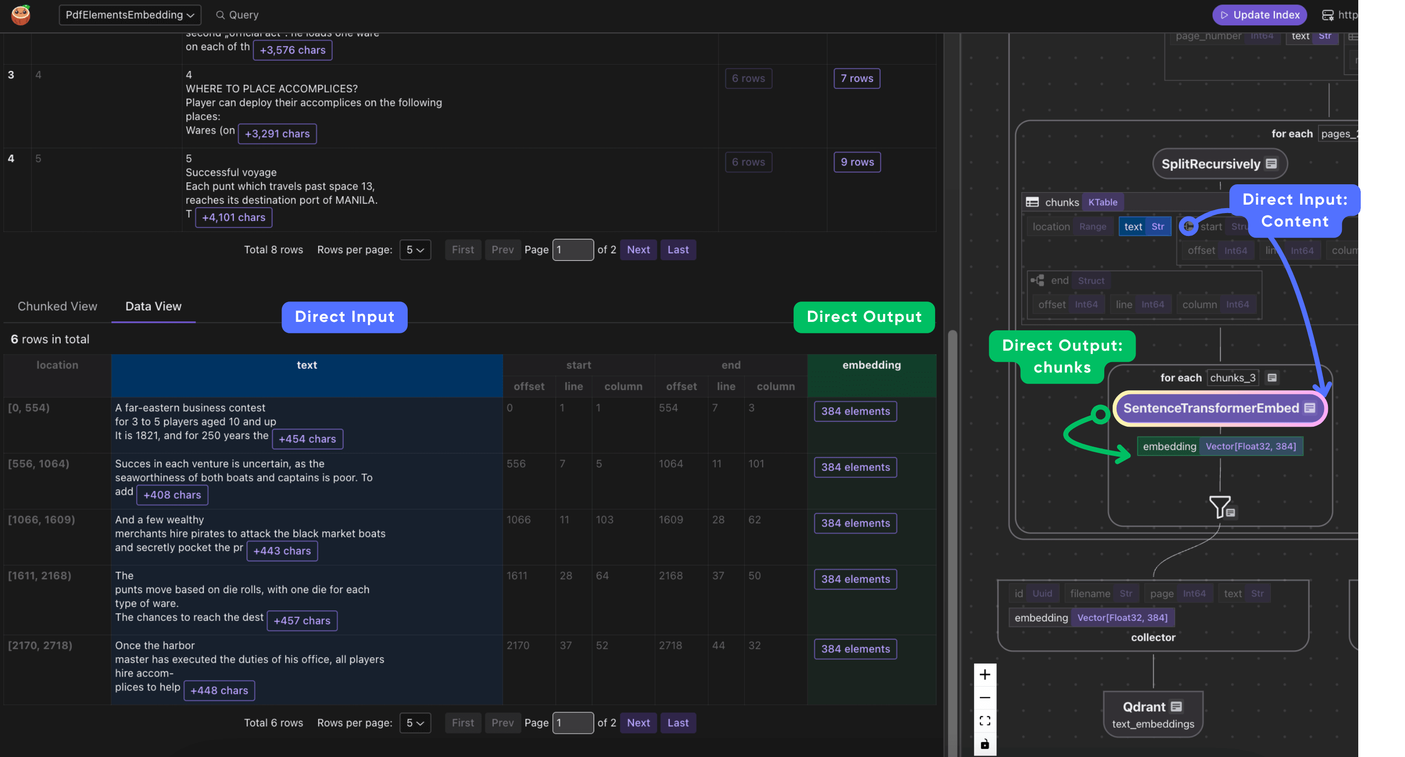 In this example, we splits out both text and images, linking them back to page metadata, and enabling unified semantic search. We’ll use CocoIndex to define the flow, SentenceTransformers for text embeddings, and CLIP for image embeddings — all stored in Qdrant for retrieval.