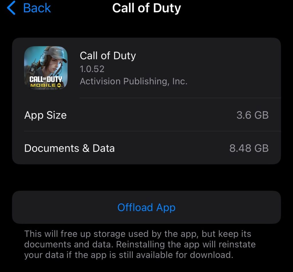 • Alternatively, specific apps can be manually offloaded by going to Settings > General > iPhone Storage, selecting the app from the list, and pressing Offload App. Offloaded apps remain visible on the home screen (usually with a cloud icon) and can be instantly re-downloaded when needed without any data loss.