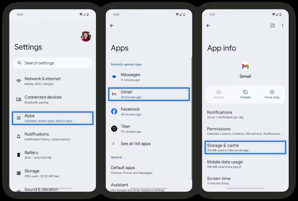 Android users can employ manual cleanup available in the retention settings. Conversation threads that contain large attachments can be manually selected and deleted in bulk. Also, users can clear residual messaging files by clearing the cache and temporary data of the messaging application itself. Navigate to Settings > Apps > [Messaging App] > Storage.