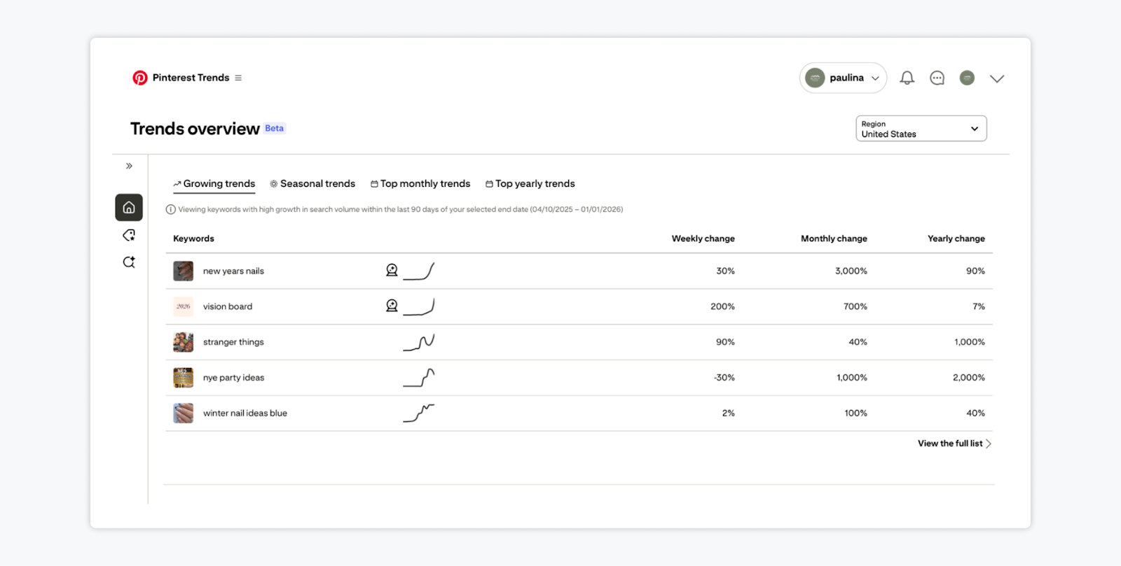 For example, TikTok’s Creative Center, Instagram’s Reels Trends, and Pinterest Trends all show you: