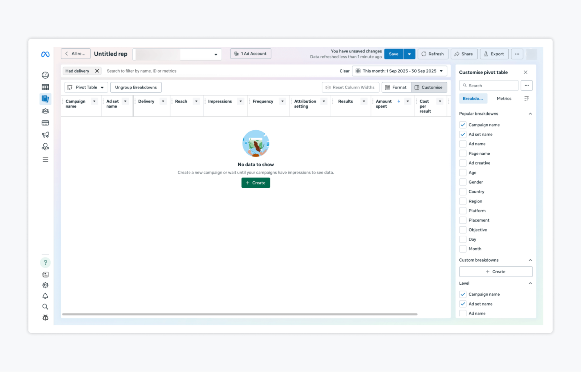 If you don’t see data right away, that simply means your campaign hasn’t yet delivered impressions. Once ads begin running, you’ll see real-time performance updates and can export reports to share with stakeholders.