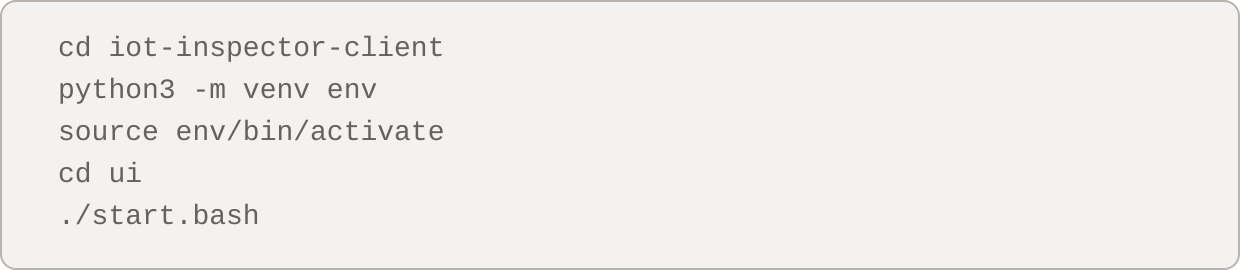 • Step 1: To rerun IoT Inspector later, open Terminal and run the following lines of code: