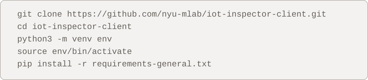 ⚠️ Do not run IoT Inspector on any network that you do not own. It is only safe to run IoT Inspector on your home Wi-Fi.