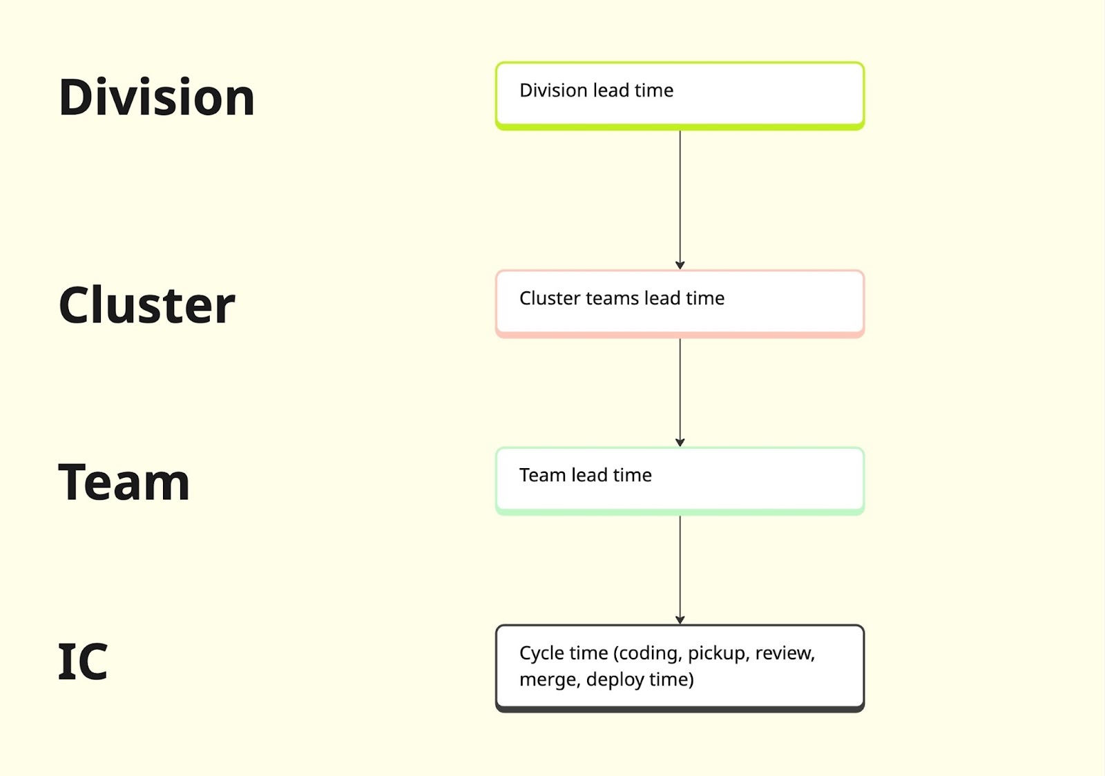 It’s important to note that performance and productivity are closely connected. Productivity reflects how effectively your delivery processes work, while performance shows what outcomes they actually produce. Different companies interpret these terms and approach metric design in very different ways. Some focus mainly on individual contributor productivity, while others track metrics only at the team level. But I believe this complex challenge requires building a comprehensive system that operates across all levels of the organization.