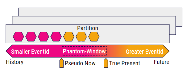 There are several ways to address this issue. One solution is to maintain a cluster-wide status, which I call a “pseudo now,” based on the smallest value of the moving timestamps among all event processors. Each event processor should also ensure that all future events have an event id greater than its current timestamp.