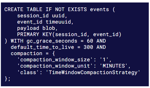 Another important consideration is enabling TimeWindowCompactionStrategy, which eliminates the negative performance impact caused by tombstones. Accumulation of tombstones was a major issue that prevented the use of Cassandra as a queue before TimeWindowCompactionStrategy became available.