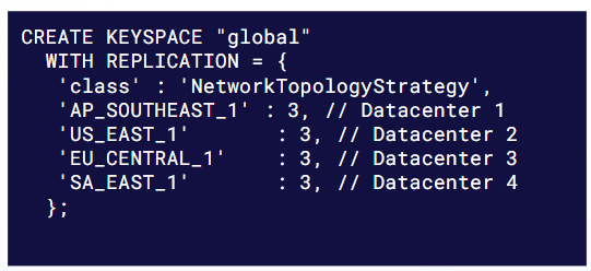 After separating these two duties, applications are only required to correctly perform the first step, which is much easier to verify through testing at earlier stages of the development cycle. Additionally, the correctness of configurations for data distribution becomes much easier to verify and audit. You can simply check the settings of keyspaces to see where data is going.