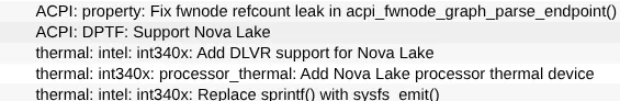 There is also DPTF support for Nova Lake as another patch on the way for Linux 6.19. That is for the Intel Dynamic Platform and Thermal Framework integration with the Linux kernel. Again, just new device IDs are needed with no other fundamental differences compared to Panther Lake.