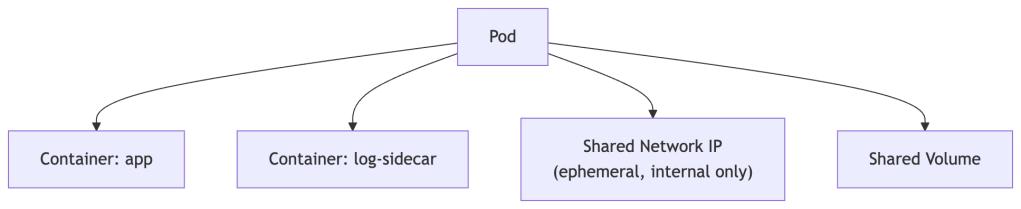 A Pod is the smallest deployable unit in Kubernetes. A Pod wraps one or more containers that should always run together and share the same network and storage.