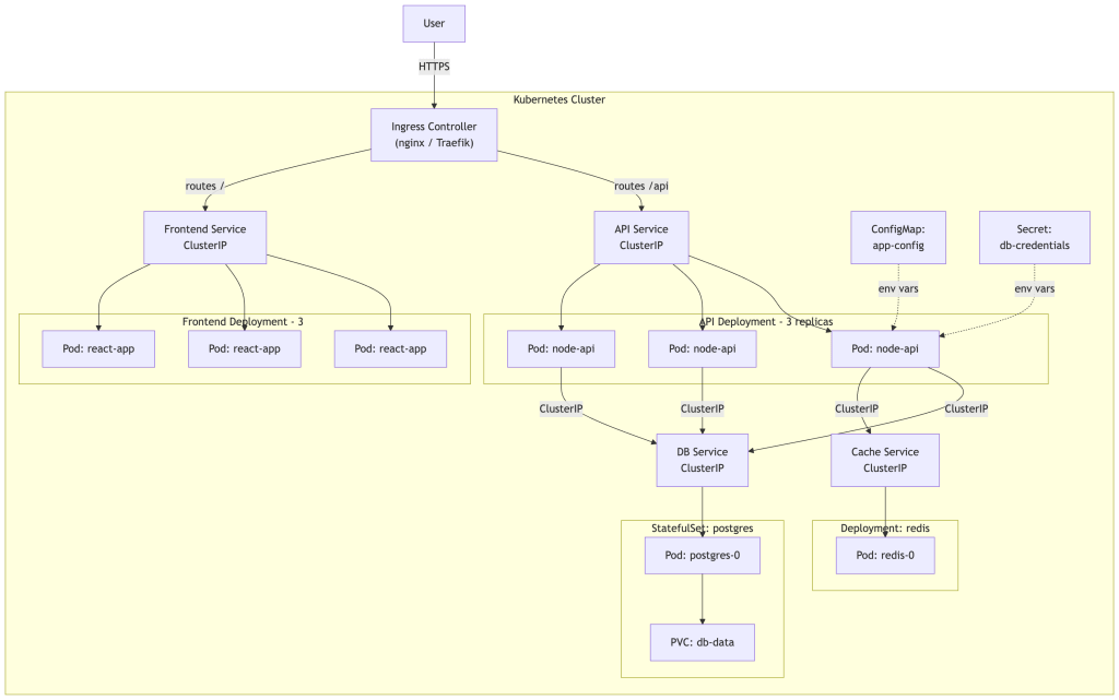 This covers: Namespaces, Deployments, Services, Ingress, ConfigMaps, Resource Management, Health Probes, Scaling, Rolling Updates, and Rollbacks — everything from this series!
