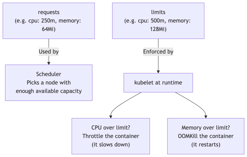 Mistake: Deploying Pods with no resources.requests defined.Why it breaks: The scheduler has no data to place Pods correctly. Nodes can become overloaded, causing unpredictable OOMKills and CPU starvation across the cluster.Fix: Always set both requests and limits. Start conservative and tune based on observed usage.