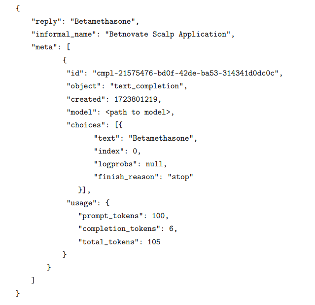 Llettuce pipelines emit JSON containing the results of the pipeline. For example, for a pipeline running the LLM and OMOP query, an input request as follows: