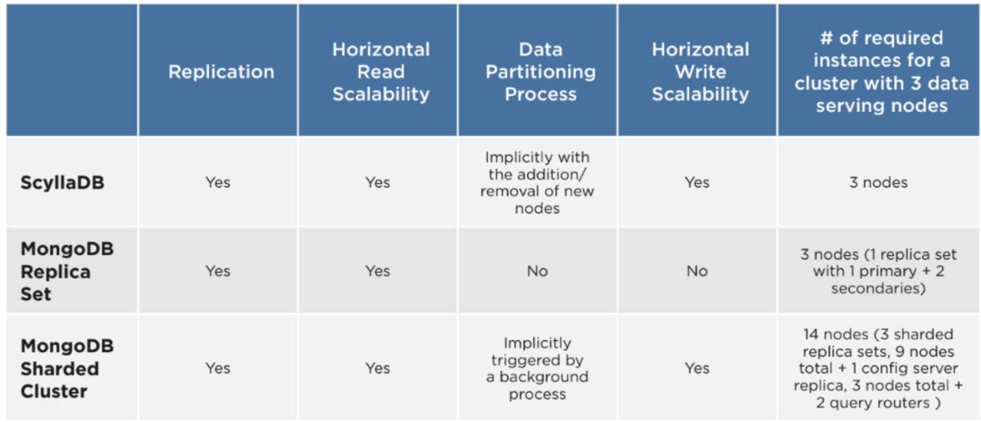 When you compare two distributed NoSQL databases, you always discover some parallels, but also numerous considerable differences. This is also the case here with ScyllaDB vs MongoDB. n Both databases address similar use cases and have a similar product and community strategy. But when it comes to the technical side, you can see the different approaches and focus. Both databases are built for enabling high availability through a distributed architecture. But when it comes to the target workloads, MongoDB enables easily getting started with single node or replica set deployments that fit well for small and medium workloads, while addressing large workloads and data sets becomes a challenge due to the technical architecture.