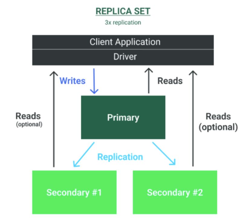 MongoDB supports horizontal scaling by sharding data across multiple primary instances to cope with write-intensive workloads and growing data sizes. In a sharded cluster, each replica set consisting of one primary and multiple secondaries represents a shard. Since MongoDB 4.4 secondaries can also be used to handle read requests by using the hedged read option.