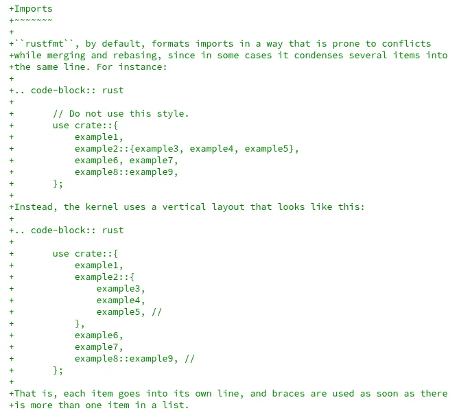 Back during the Linux 6.18 merge window Linus Torvalds commented on “mindless and completely crazy Rust format checking” and that the RUst format checking “is all bass-ackwards garbage” with condensing multi-line import statements into single lines. Merged minutes ago to Linux Git ahead of tomorrow’s Linux 6.18-rc2 are fixes to the Rust format checking and updated guidelines to address Torvalds’ criticism.