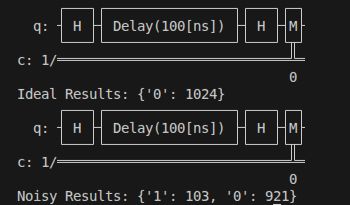 2. The circuit applies a Hadamard gate, waits for a 100 nanosecond delay, applies a second Hadamard gate, and then measures the result.