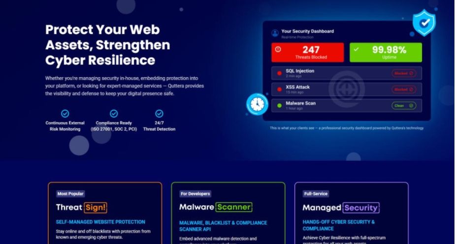 Quttera provides automated website security and malware detection solutions, delivering compliance-ready evidence for organizations across financial services, healthcare, e-commerce, and technology sectors.