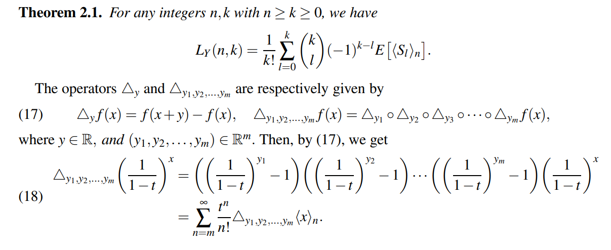 [7] Boyadzhiev, K. N. Convolutions for Stirling numbers, Lah numbers, and binomial coefficients. Proc. Jangjeon Math. Soc. 25 (2022), no. 2, 227-244.