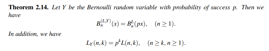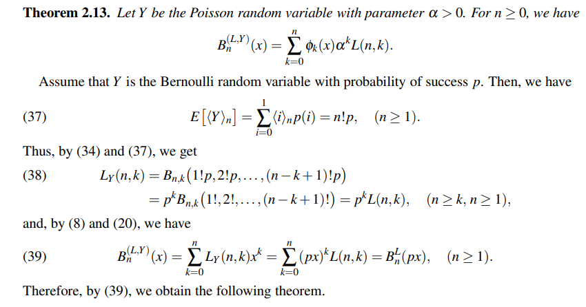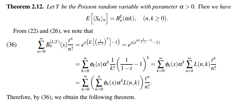 [18] Kim, T.; Kim, D. S.; Dolgy, D. V.; Park, J.-W. Degenerate binomial and Poisson random variables associated with degenerate Lah-Bell polynomials. Open Math. 19 (2021), 1588-1597.